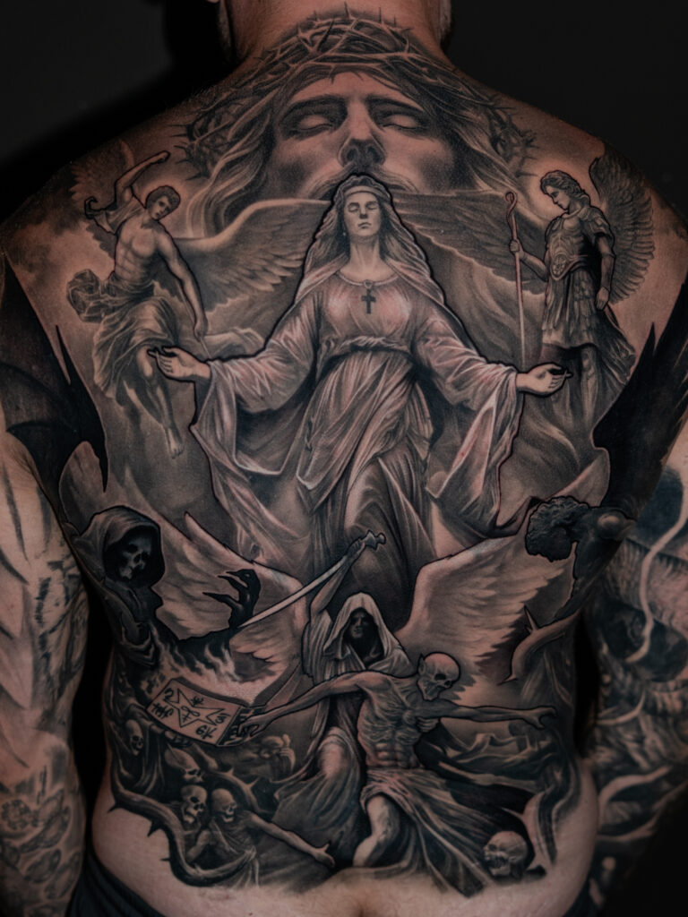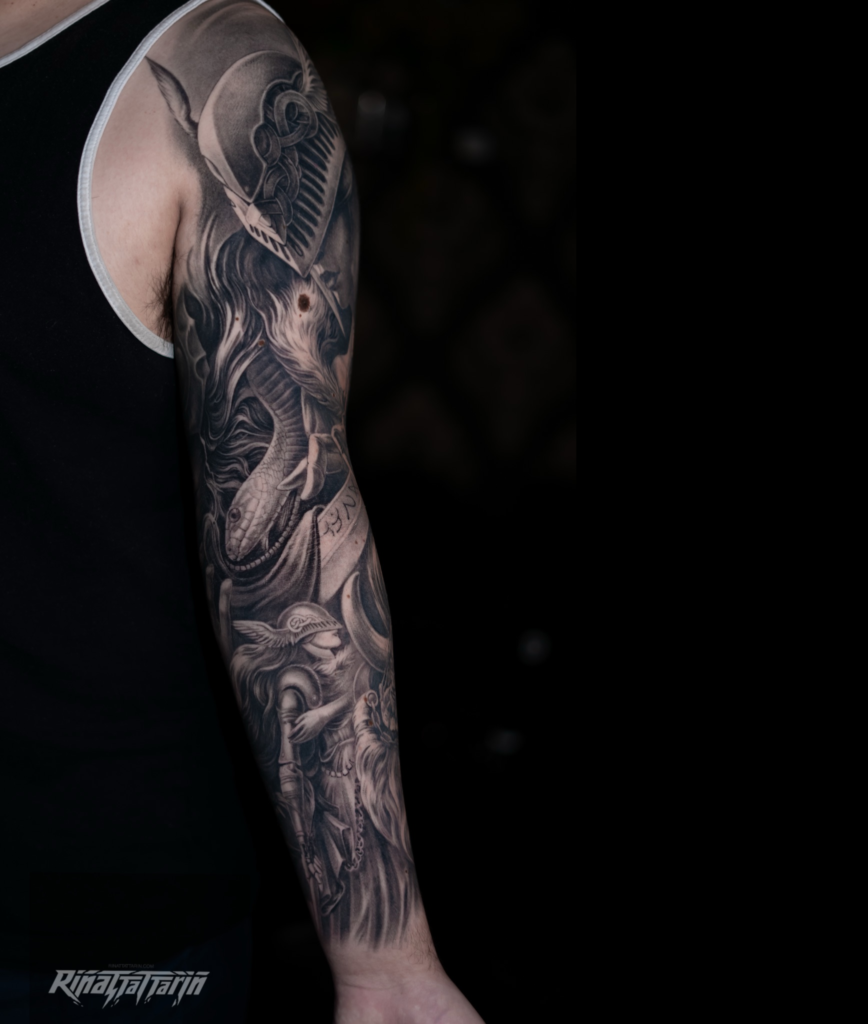 Rinat’s tattoos are a fusion of technical brilliance and artistic vision, shaped by more than twenty years of experience. His work radiates realism and creativity, whether in striking black & gray or vivid color, each piece layered with depth, texture, and emotion. From intricate portraits to large-scale compositions, his tattoos carry the weight of storytelling, refined by countless hours of dedication and over 40 international awards. With every needle stroke, Rinat transforms skin into living canvas — a place where detail, imagination, and precision come together to create unforgettable artistry.
